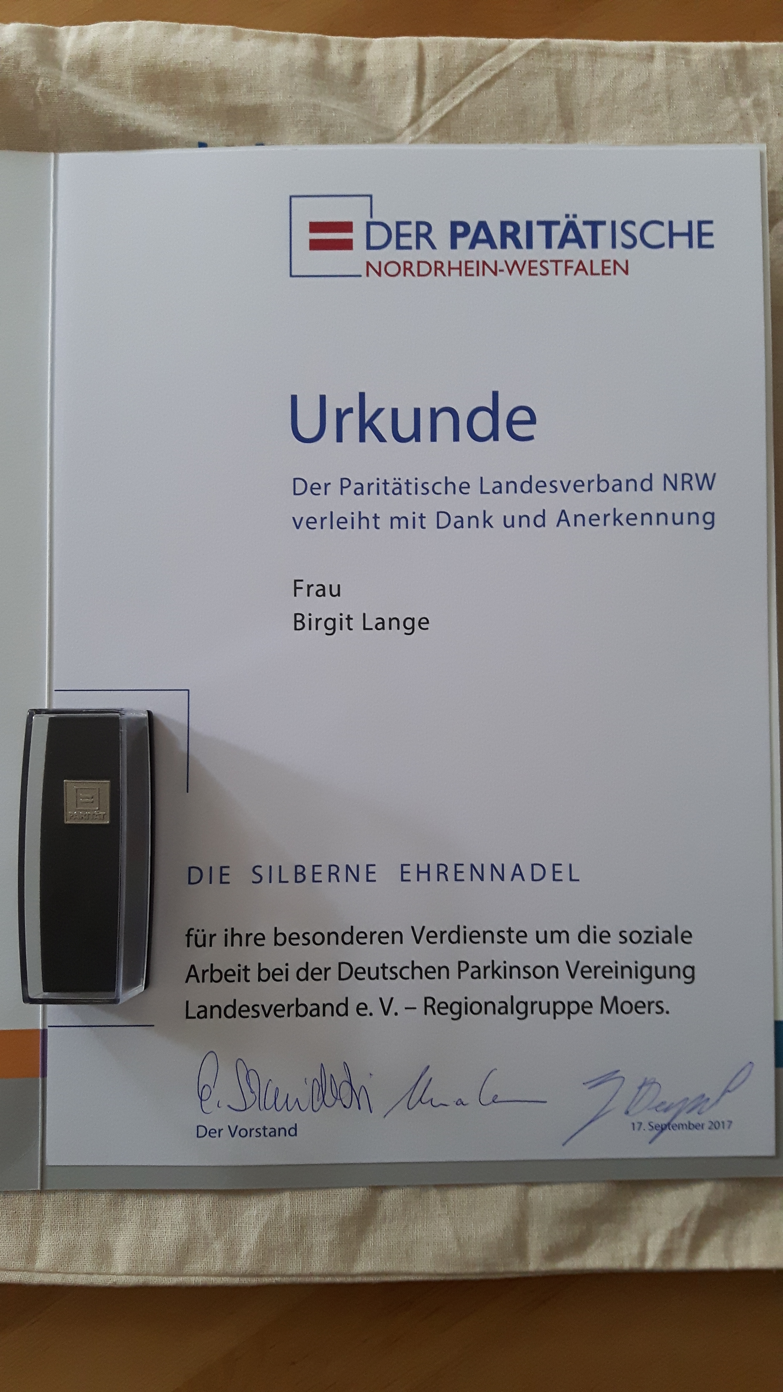 Für ihre bundesweite Aufklärungskampagne "Parkinson – Betroffene helfen Betroffenen" wurden der Rheinberger Detlev Friedriszik und seine Mitstreiterin Birgit Lange, beide Mitglieder in der Selbsthilfegruppe Parkinson Moers, für den mit 10 000 Euro dotierten Deutschen Engagementpreis nominiert. Im September entscheidet sich, ob sie es unter die besten Vier schaffen. Der Kreis Wesel hatte Lange und Friedriszik bereits im Juni mit dem Ehrenamtspreis ausgezeichnet.